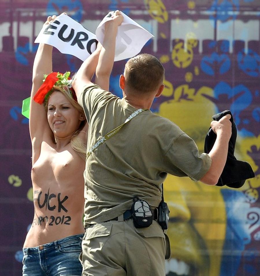 boegbeelden van FEMEN werden op weg naar de fanzone door de veiligheidsdienst onderschept.